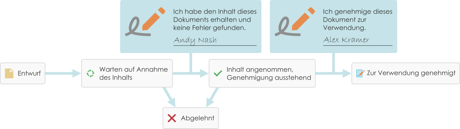 Sie können Benutzer dazu auffordern, ihre elektronische Signatur einzugeben, bevor sie einen bestimmten Statuswechsel in einem Workflow vornehmen dürfen.