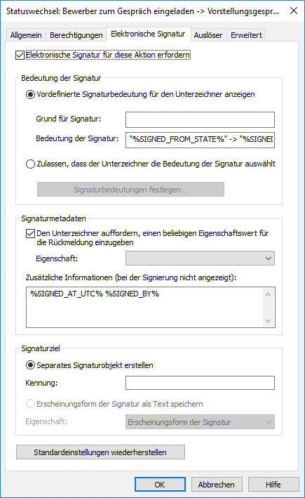 | %SIGNED_FOR_STATETRANSITION% | Der Titel des Statuswechsels für den die elektronische Signatur erforderlich ist. |