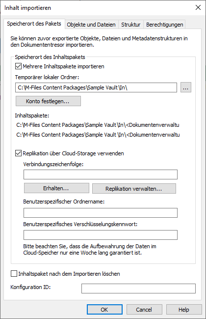 Noch in der Speicherort des Pakets Registerkarte die Replikation über Cloud-Storage verwenden Option aktivieren, um den Import von der Cloud durchzuführen.