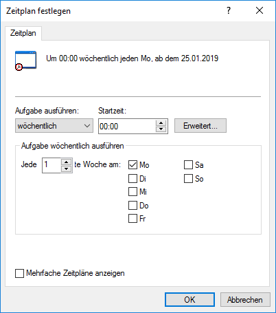 Ergebnis:Das Eigenschaften des geplanten Auftrags Dialogfeld wird geöffnet.