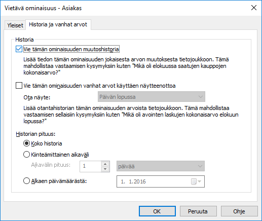 Huomaa: Suosittelemme erillisen kohdetietokannan käyttämistä jokaiselle uudelle tietojoukolle.