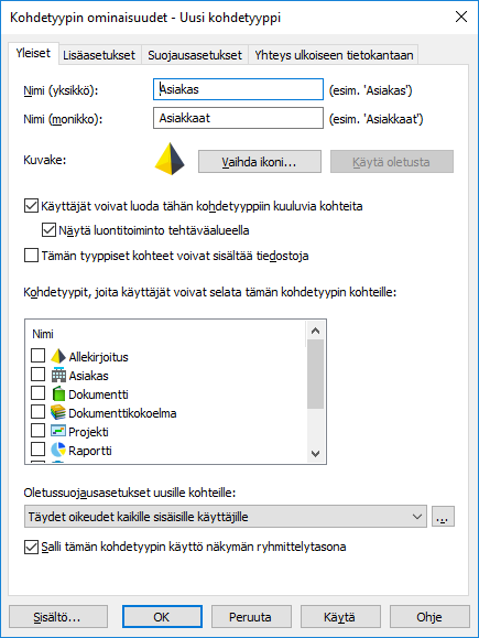 Uuden kohdetyypin luonti