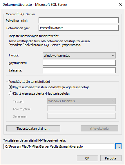 Dokumenttivaraston tiedostodatan sijainnin muuttaminen Microsoft SQL Serverille