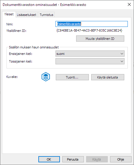 - Napsauta OK sulkeaksesi Tiedostodatan sijainti -ikkunan ja varaston tietokantamoottorin ikkunan ja napsauta lopuksi OK sulkeaksesi Dokumenttivaraston ominaisuudet -ikkunan.