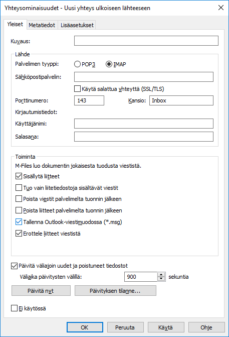 Automaattisten metatietojen määritys sähköpostilähteelle