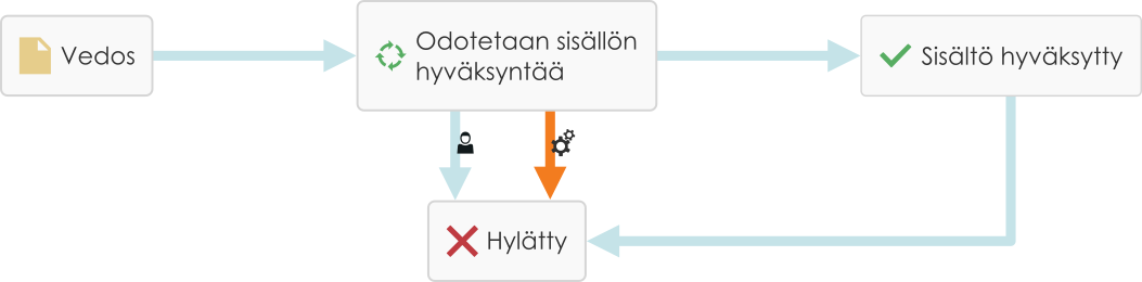 Työnkulku siirtää kohteen Hylätty-tilaan automaattisesti, jos kukaan ei siirrä sitä Hyväksytty-tilaan.