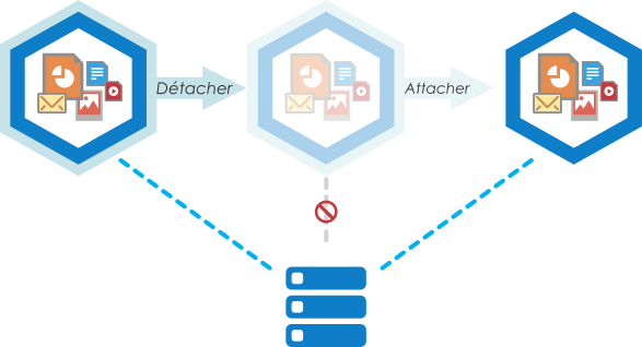 Si le coffre est détaché du serveur, il n’apparaît pas dans la liste des coffres disponibles dans M-Files Admin et les utilisateurs ne peuvent pas y accéder, mais toutes les données stockées dans le coffre restent intactes. Vous pouvez, par exemple, déplacer un coffre détaché vers un autre server et le remettre en service en l’attachant au nouveau serveur.Si, en raison d’un manque d’espace, par exemple, il faut déplacer un coffre d’un serveur à un autre, cela est possible à l'aide des fonctions Détacher et Attacher : détachez simplement le coffre du serveur A, copiez les données du coffre sur le serveur B et attachez le coffre au serveur B.