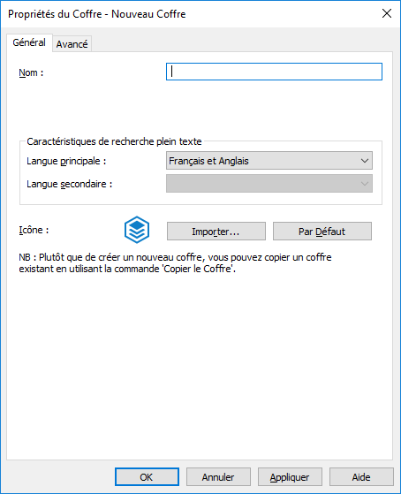 Cliquez sur Importer... pour modifier l’icône du coffre afin que la recherche du bon coffre soit simplifiée si vous utilisez plusieurs coffres.
