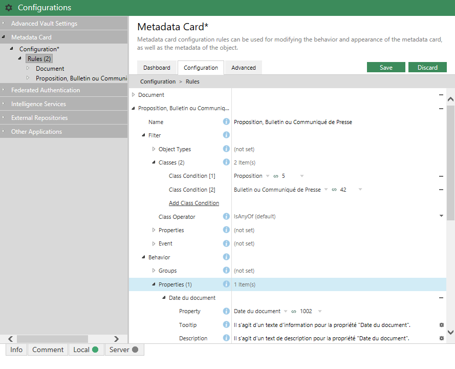 Pour plus d'informations sur la définition de la condition et du comportement d’une règle, reportez-vous à Configuring the M-Files Metadata Card.