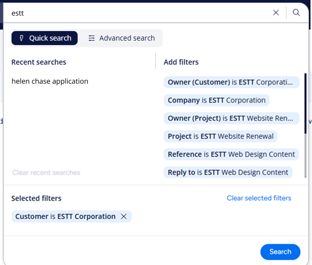 M-Files automatically suggests search filters for you when you enter a search term to the search bar.