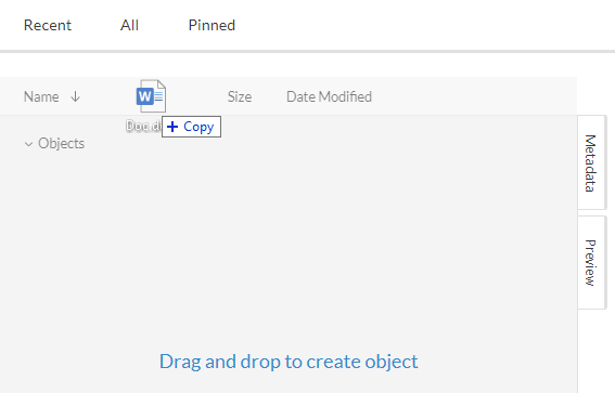 - To create a document, drop the file on an empty area or the area with the column headings.