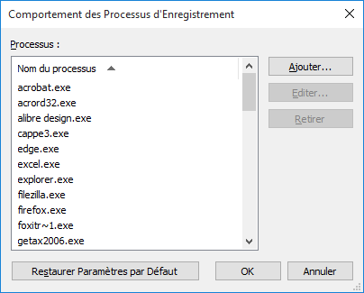 Paramètres généraux spécifiques aux processus d'enregistrement.