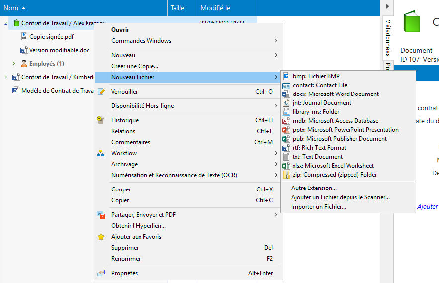 | Fonctions de base dans M-Files Desktop / Menu "Nouveau" | |