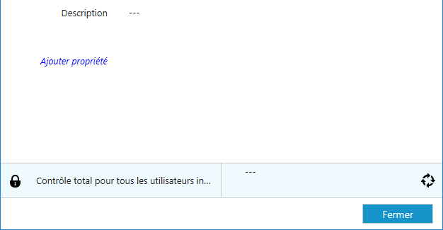Pour ouvrir la boîte de dialogue des autorisations, cliquez sur la zone des autorisations en bas de la fiche de métadonnées.