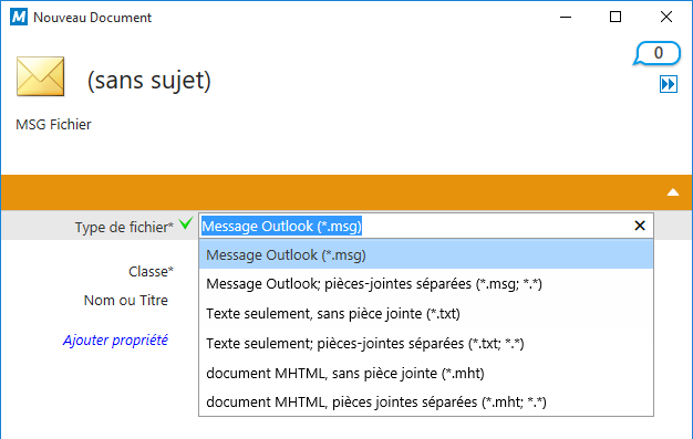 Les messages électroniques peuvent être sauvegardés dans M-Files dans différents formats.