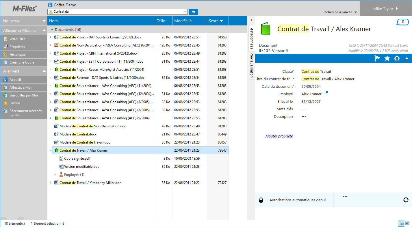 M-Files permet d'effectuer des recherches rapides et des recherches avancées.