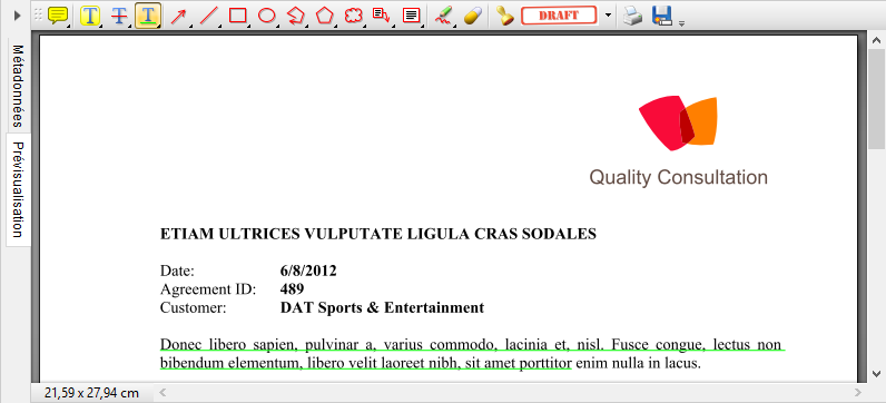 Vous allez ainsi créer un nouvel objet d' annotation sous votre document, visible via la liste, et ouvrir la barre d'outils des annotations sur la fenêtre de prévisualisation.