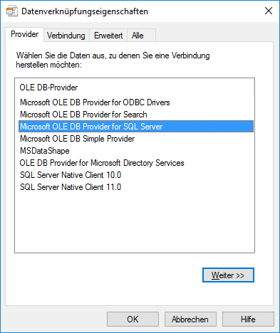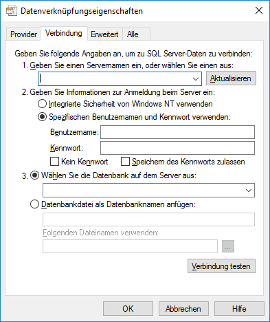 Das untengenannte Beispiel beschreibt, wie ein Objekttyp zu definieren ist, um eine externe Datenbankverbindung zum SQL-Server zu verwenden. Die Schritte zur Spezifizierung der externen Datenbankverbindung für eine Werteliste ist sehr ähnlich.