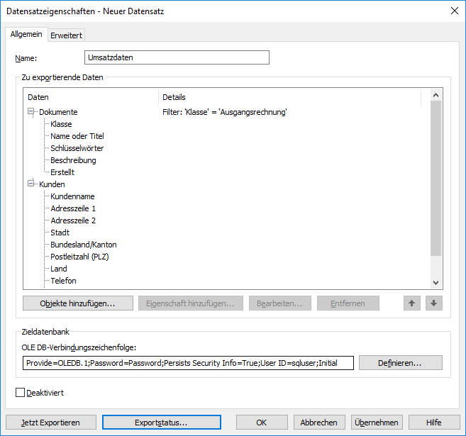Auf Jetzt exportieren klicken, um den Datensatz umgehend zu exportieren.