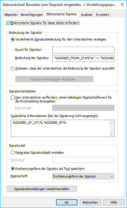 | %SIGNED_FOR_STATETRANSITION% | Der Titel des Statuswechsels für den die elektronische Signatur erforderlich ist. |