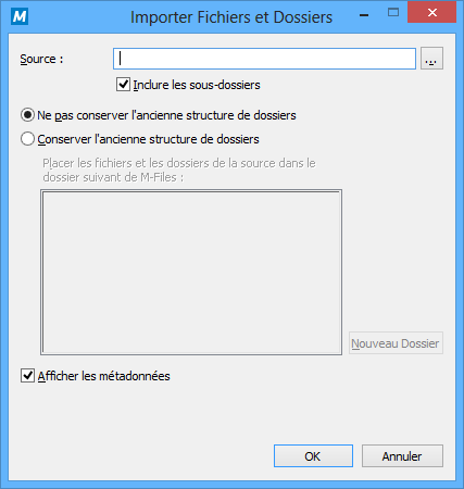 Spécifiez la source depuis laquelle vous souhaitez importer des fichiers ou des dossiers dans M-Files.