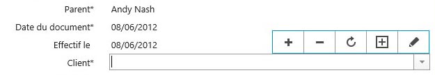Les cinq commandes de la barre d'outils : Ajouter un champ, Supprimer le champ, Rafraîchir, Ajouter la valeur et Éditer.