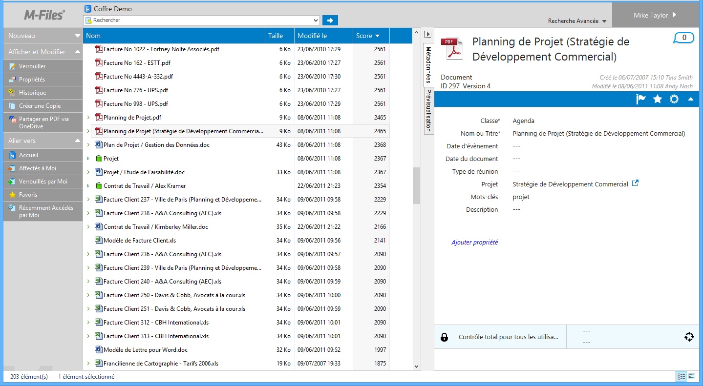 Astuce : En transférant par exemple des fichiers dans M-Files, la fonction aperçu facilite le processus de renseignement des métadonnées.