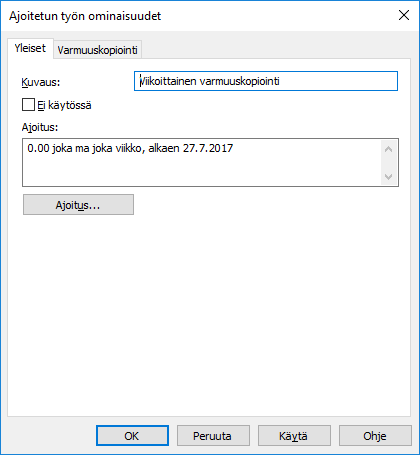 Määritä uusi ajoitettu varmuuskopiointityö suorittamalla seuraavat vaiheet: