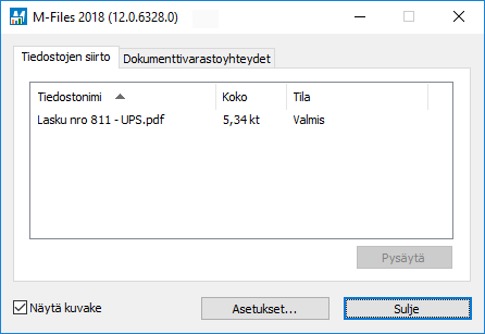 Asetukset...-painikkeella pääset M-Files Desktop -asetuksiin. Katso lisätietoja luvusta M-Files Desktop -asetukset.