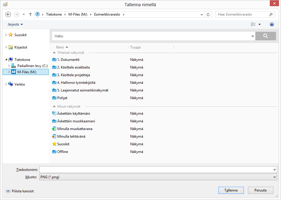 Dokumenttien tallentaminen M-Filesiin muista sovelluksista