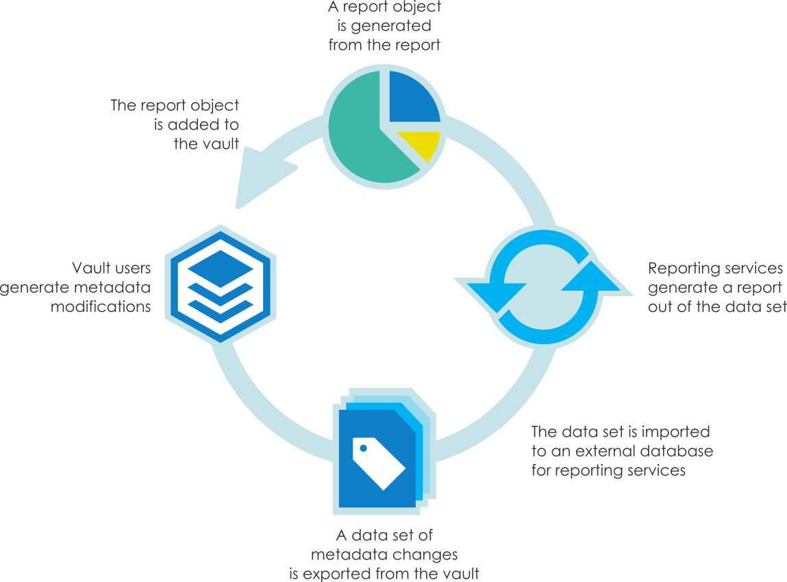The reporting data is exported from the vault to an external reporting database. In , the reporting database is available for a separate fee.