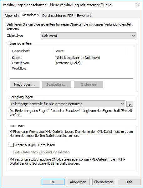 Ergebnis:Die Metadaten Registerkarte wird geöffnet.
