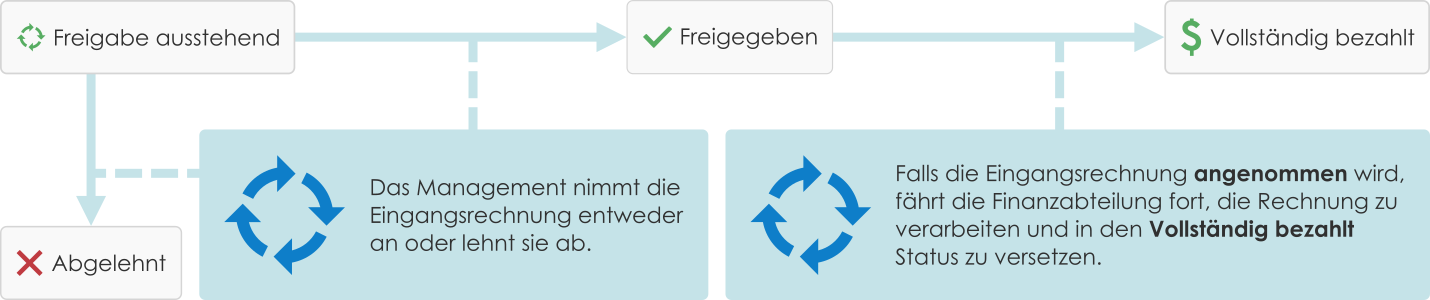 Sie können Workflows zum Beispiel für den Umlauf von Einkaufsrechnungen verwenden. Workflow-Status könnten dann umfassen: