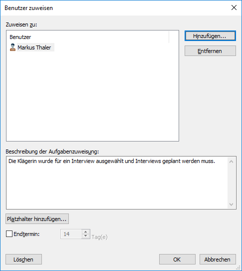 Das Dialogfeld Aufgabenzuweisung.