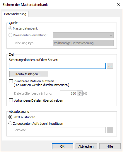 Sichern der Masterdatenbank