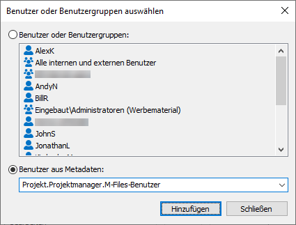 Anstatt den Berechtigungen eines Objekts nur Benutzer und Benutzergruppen hinzuzufügen, können Sie auch sogenannte Pseudobenutzer oder Benutzer aus Metadaten hinzufügen.