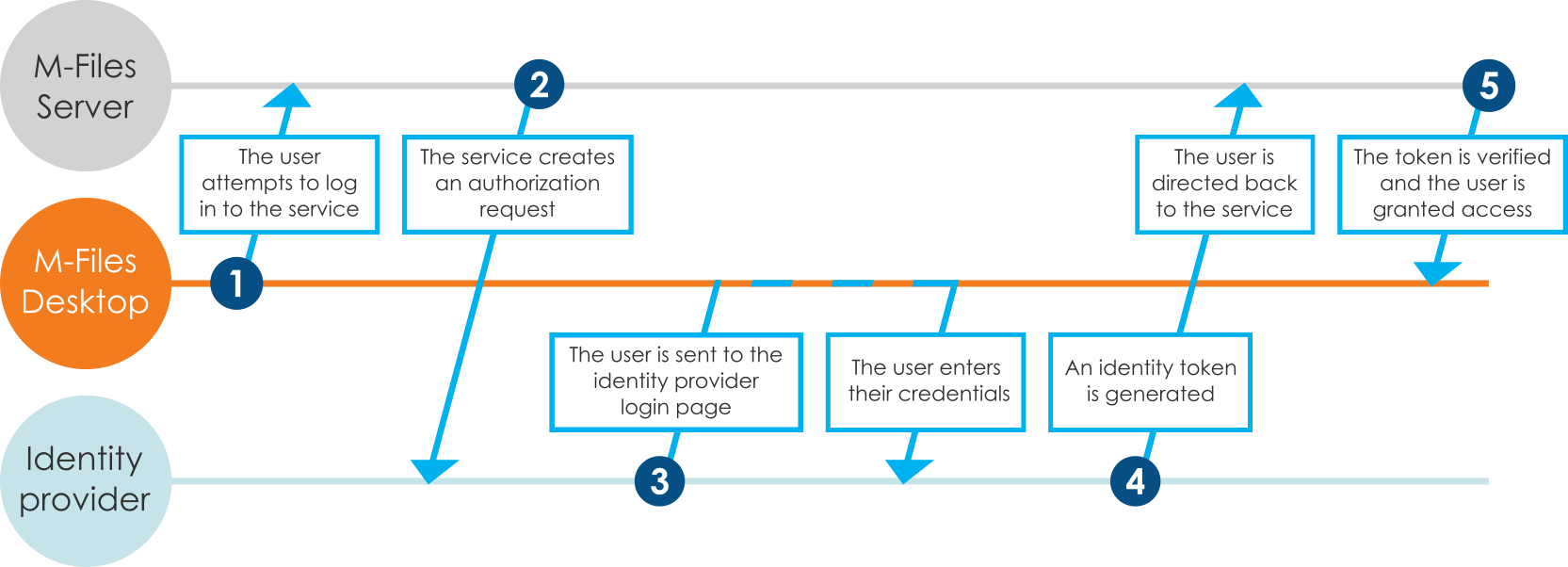 M-Files Server creates an authorization request, which it sends to the identity