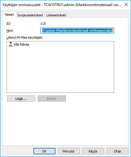 Voit yhdistää M-Files-käyttäjän ulkoisen tietovaraston käyttäjään toimimalla seuraavasti: