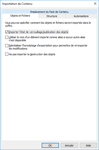 Importer l’état de verrouillage/publication des objets